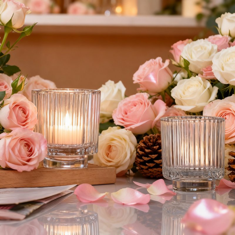 • Vertical striped thick-bottomed glass candle cup